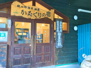 入り口には「かたくりの宿」の看板と、もうひとつ「津南町立秋成小学校 結東分校」の木札が。