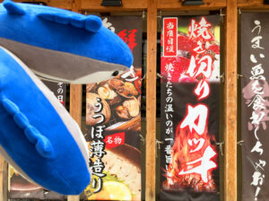 酔いも回ってきた頃、ふと目に入ったのが「カツオくじ」。1回1000円の運試しで、ぬいぐるみや高知グッズが当たるらしい…。