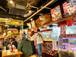 高知市の中心にある「ひろめ市場」は、観光客も地元民も入り混じるカオスなグルメ空間!