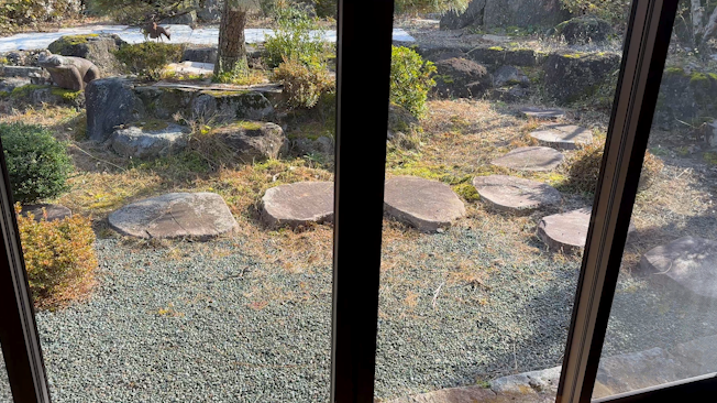 大きな松の木を中心に、庭石が美しく配置されていてる素敵な庭なんです!このお庭はお家が売りに出されてからも頻繁に前の所有者さんがお手入れに通っていたんだそうです。今は冬だからちょっとさみしげですが、夏には青々とした活気ある庭になります。