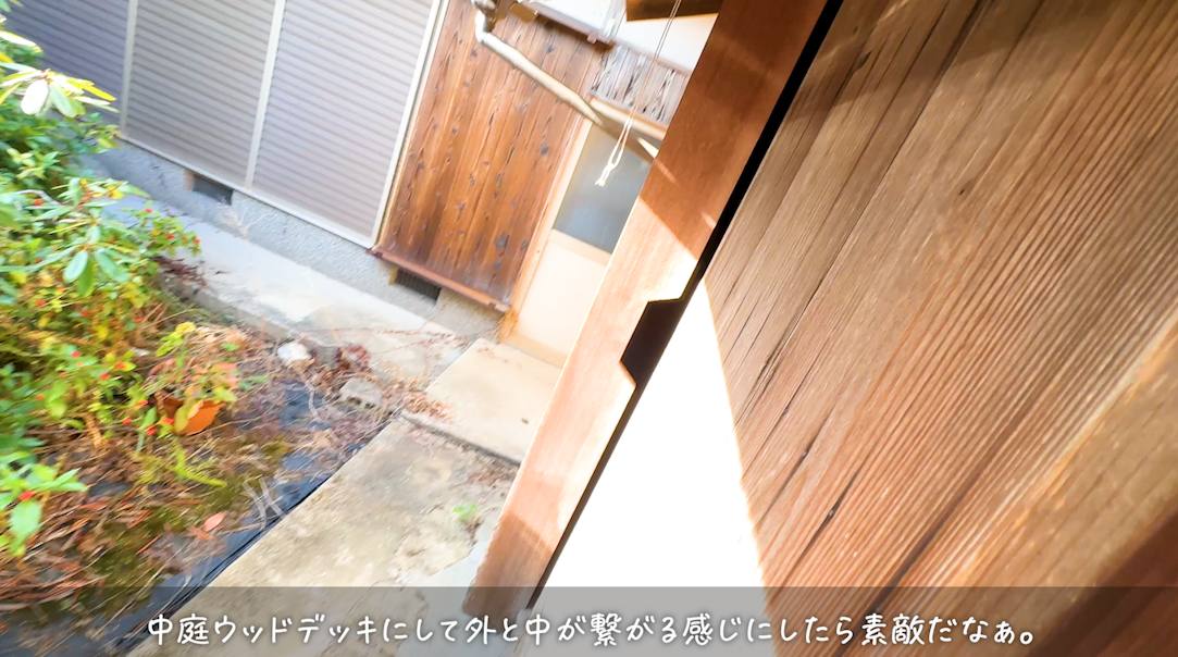 中庭ウッドデッキにして外と中が繋がる感じにしたら素敵だなぁ。・・・って脂漏の妄想にも程がありますよね。失礼いたしました。。でも実現できたら素敵だなぁ。
