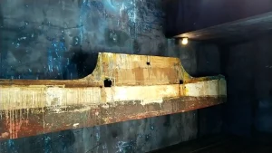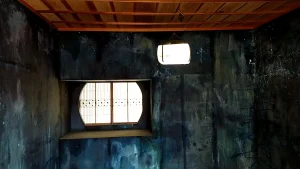 This minimalist space once used for local Go matches is now home to a single poetic detail – a delicate camellia carved from wood, hidden among shadows and silence. It’s a quiet homage to nature and impermanence.