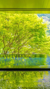 I was blown away by the rooms—the entire window view was green and breathtaking. At night, though, I wondered if it would go pitch black out there! Thankfully, many rooms have open-air baths with equally stunning views, perfect for morning soaks.