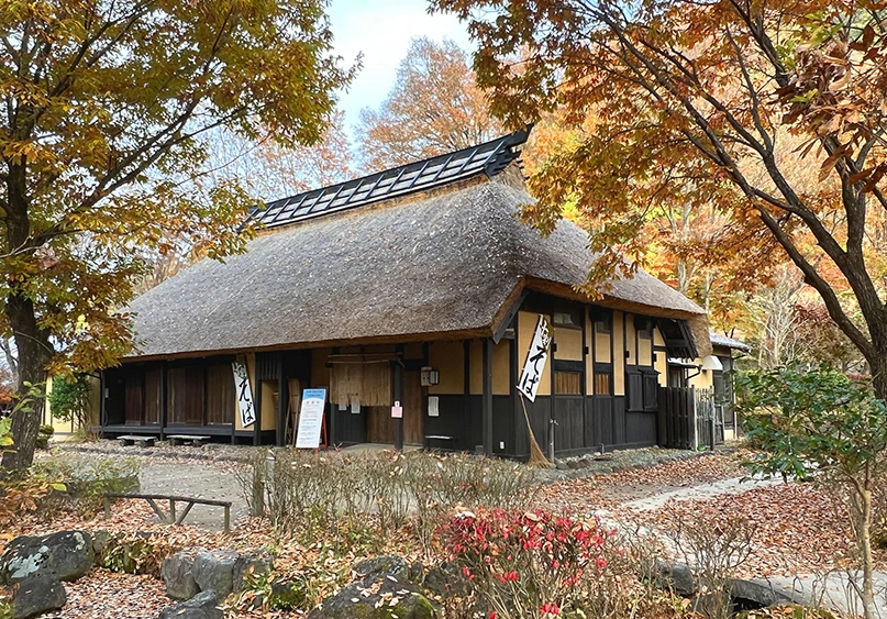 시설 내의 *‘소바도코로 케야키’*는 가야부키 지붕의 전통 건물로, 신선한 메밀가루를 이용한 100% 메밀 소바를 맛볼 수 있어요.